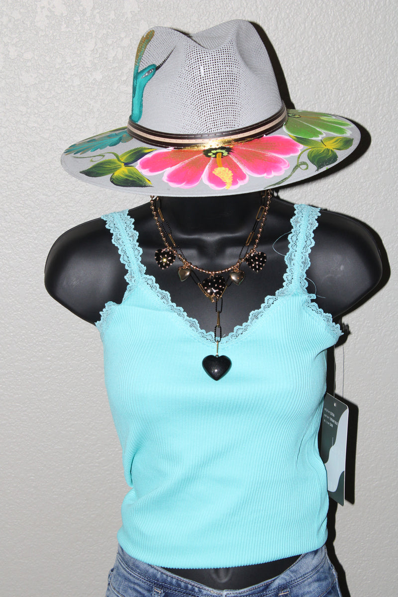Stretchy Ribbed Seamless Lace Trim Tank Top